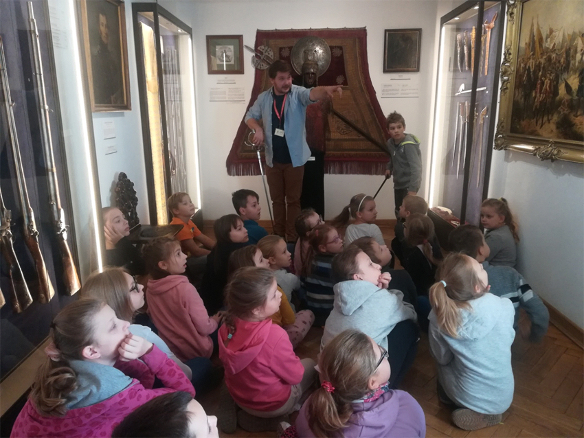 Zwiedzanie zamku połączone było z prezentacją różnych typów broni i uzbrojenia.