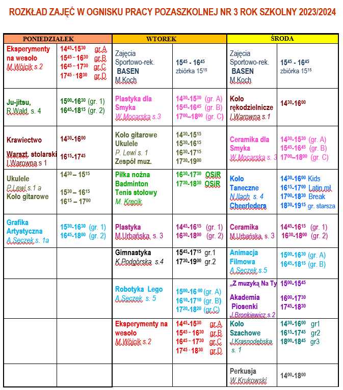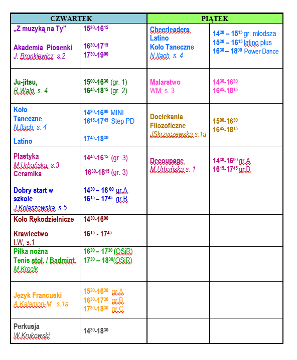 !!! AKTUALNY PLAN ZAJĘĆ !!!