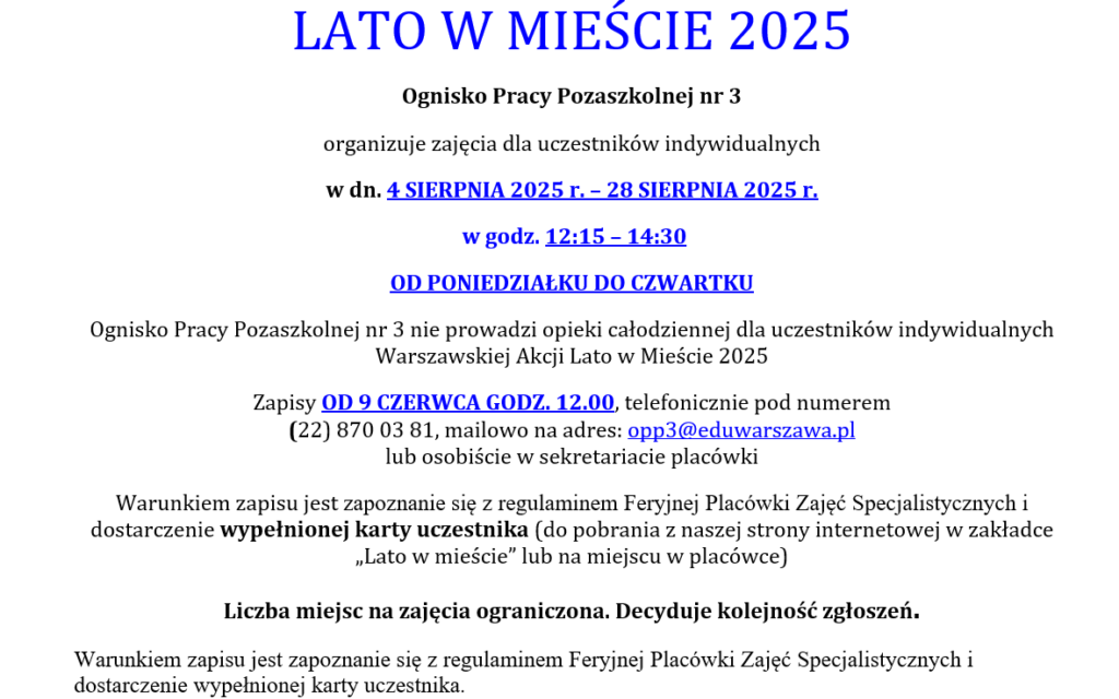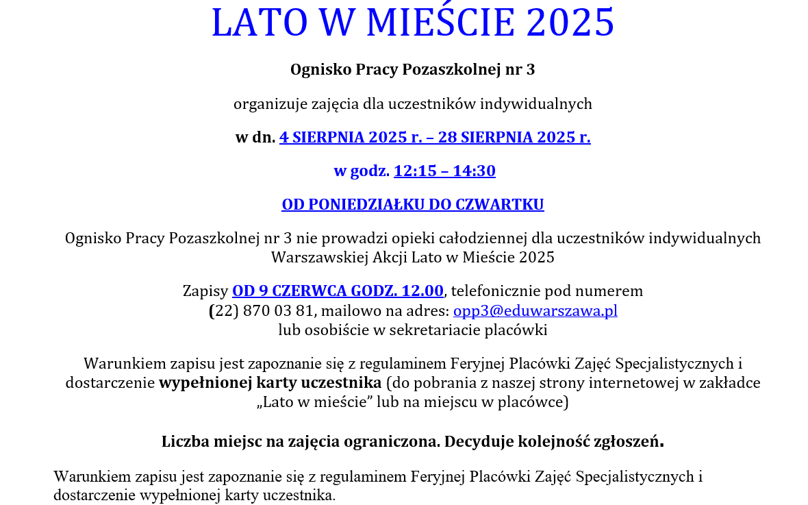 • Deklaracja dostępności Ogniska Pracy Pozaszkolnej nr 3 w Warszawie