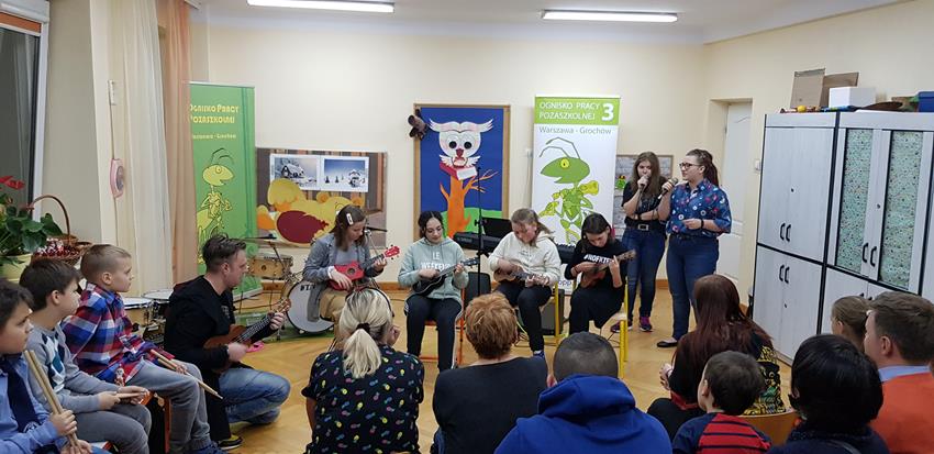 Podczas półtora godzinnej audycji zaprezentowali się: perkusiści, gitarzyści, zespół ukulele, dziewczęta z koła wokalnego i nasz nowy zespół muzyczny ( na razie „no name”).