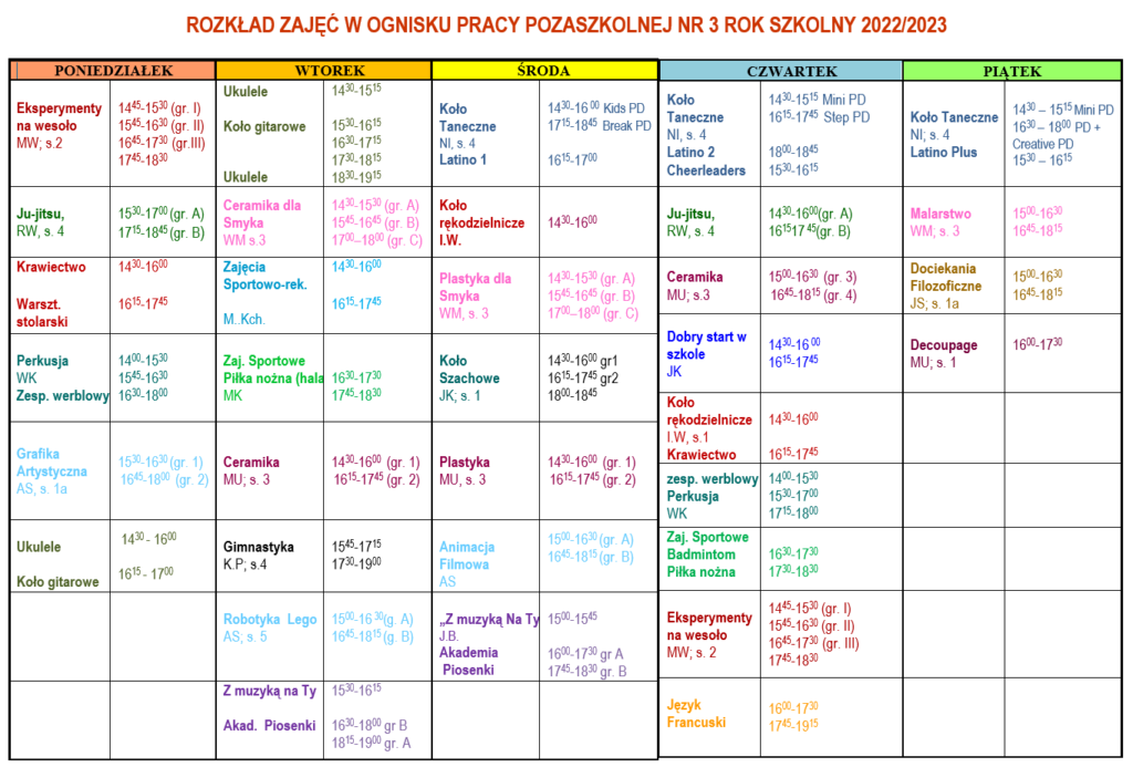 PLAN ZAJĘĆ 2022/2023 Z przyczyn od nas niezależnych placówka zastrzega sobie wprowadzenie zmian w planie zajęć. O wszystkich zmianach będziemy informować rodziców na bieżąco