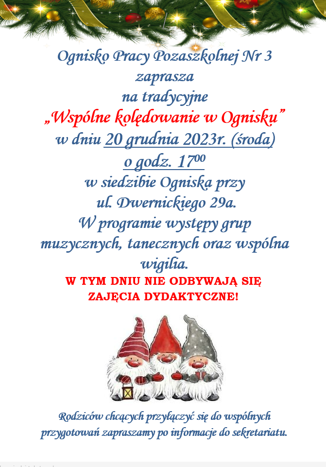 “Wspólne kolędowanie w Ognisku” 20/12/2023 r.