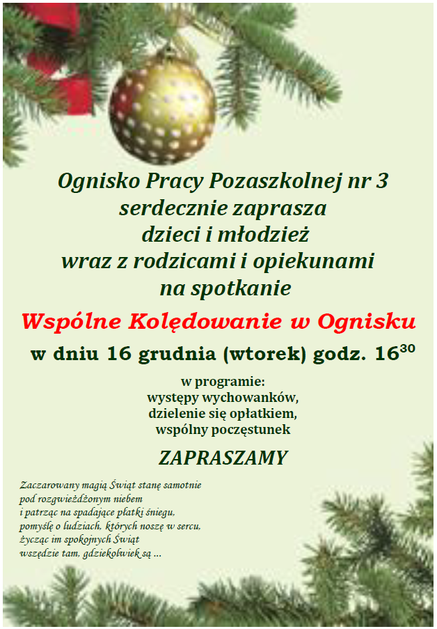 Zapraszamy na Wspólne Kolędowanie w OPP3! 16/12/2025 start 16:30!!!